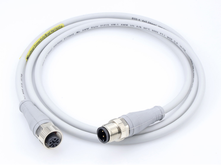 Micro-Change (M12) Double-Ended Cordset with Knurled Hexnut, 4 Poles, Male (Straight) to Female (Straight), 22 AWG, Gray TPU WSOR Cable, Gray Overmold, 5.0m (16.40′) Length