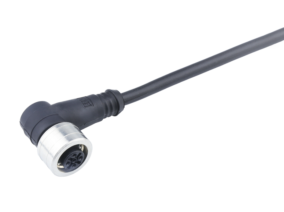 Ultra-Lock (M12) Single-Ended Cordset, 4 Poles, Female (90°) to Pigtail, 22 AWG, Black PUR LSOH Cable 2.0 (6.56′) Length