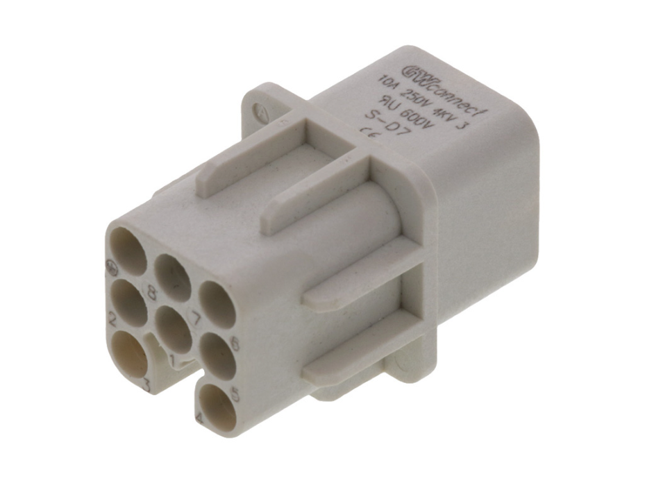 GWconnect Crimp Contact Insert, Female, 7-Pole, 10A, for Crimp Contacts, Size 3A «21×21», Grey