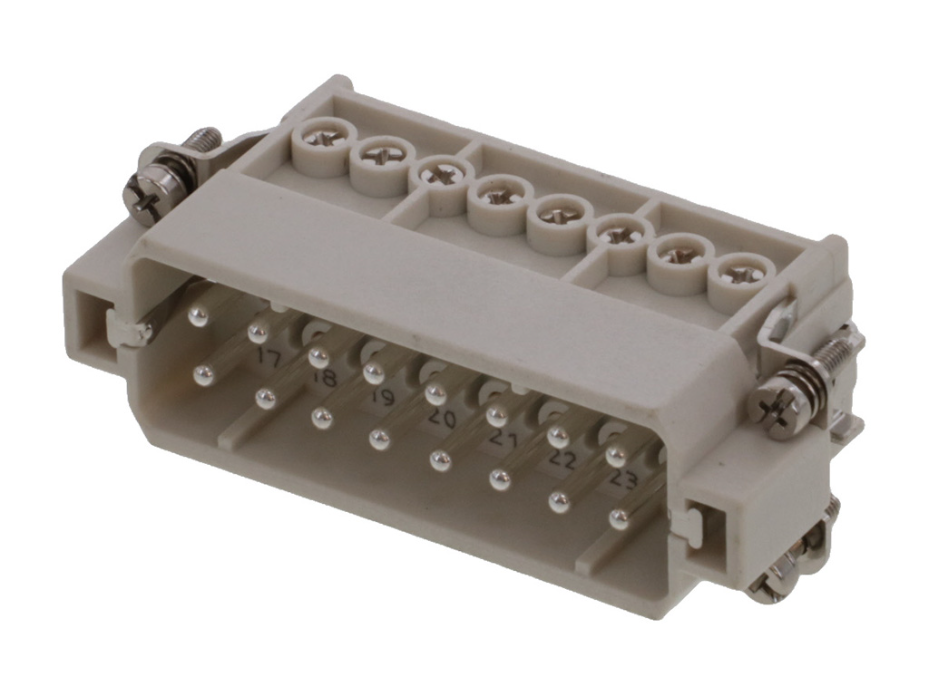 GWconnect Screw Terminal Insert, Male, 16-Pole, 16A, Numbered 17-32, with Wire Protection, Silver (Ag) Plated Contacts, Size 16A «66×16»