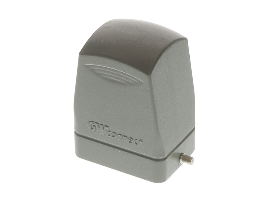 GWconnect STD – Standard, Single Lever Hood, Die-cast Aluminum, with 2 Pegs, Side Entry, Size 6B «44×27», M25 Thread, High Construction, Grey